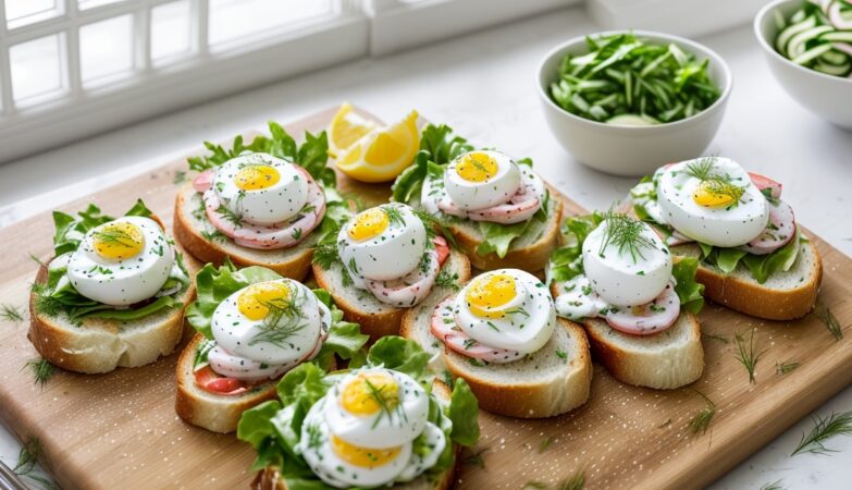 • Šviežios petražolės, krapų ar svogūnų laiškų papuošimui ir skoniui