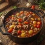Skonį paįvairins lauro lapai, keli žiupsniai rūkytos paprikos, ar net šiek tiek aitriosios paprikos (jei mėgstate aštriau). Jei patiekalas atrodo per sausas, papildomai įpilkite vandens ar lengvo sultinio, tačiau stenkitės nepadaryti per skysčio – troškinys turi būti maloniai drėgnas, bet ne sriuba.